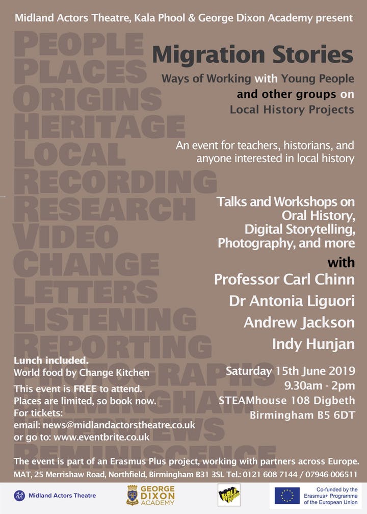 A free event in Birmingham next month for teachers, historians, and anyone interested in local history. Featuring talks and workshops on Oral History, Digital Storytelling, photography, and more. Book your place here .